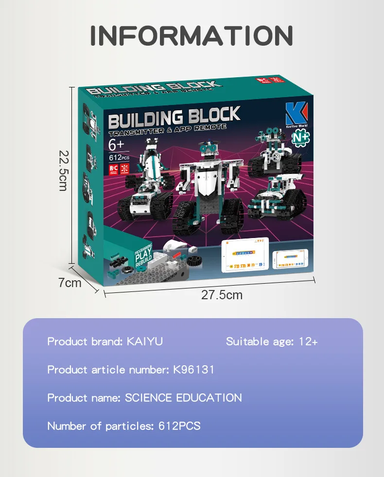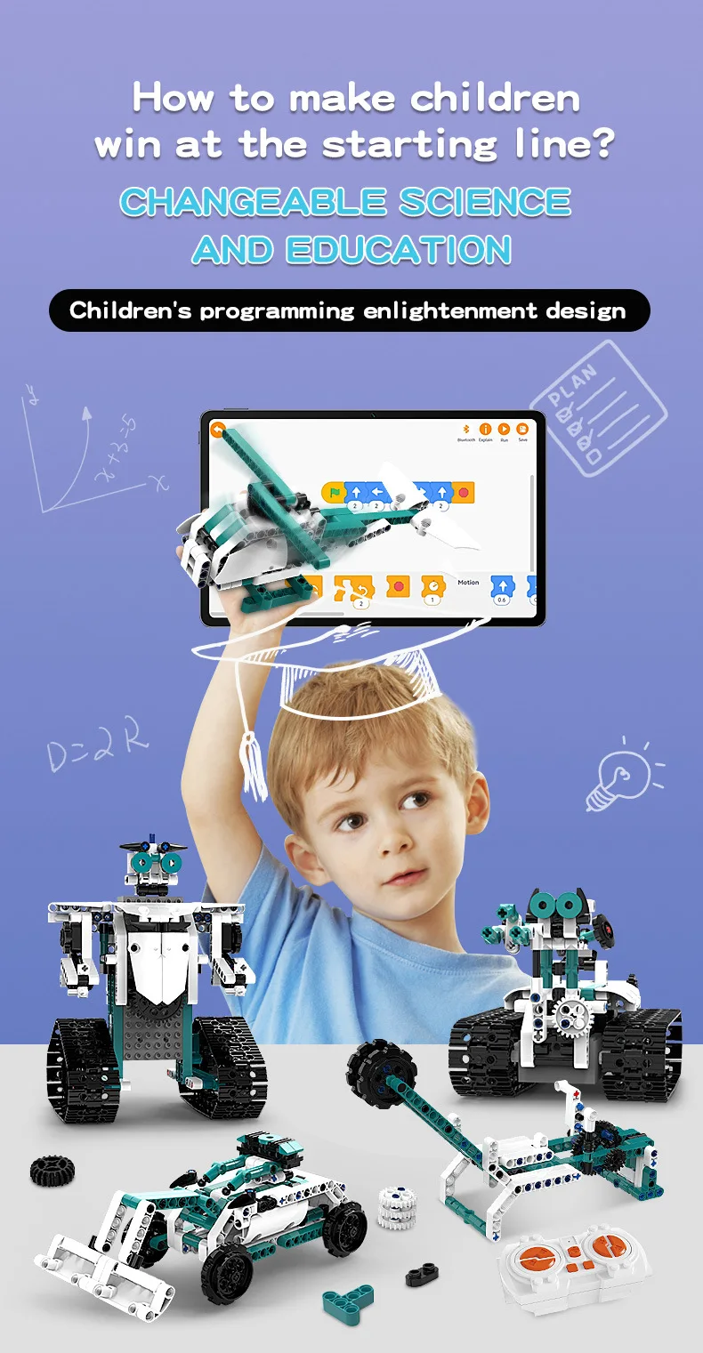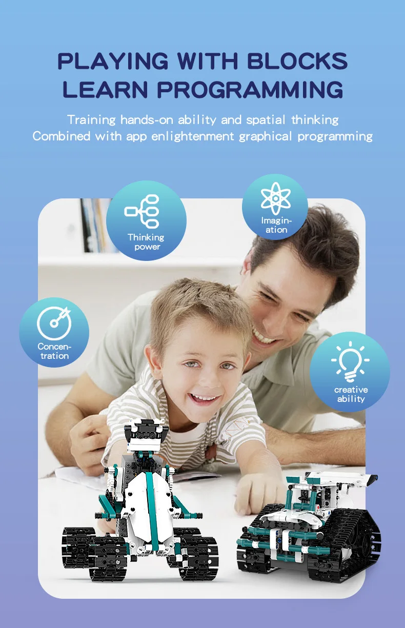 Brinquedo Robô de Controle Remoto para Crianças, Compatível com Lego, Ciência, Ensino, Pequenas Partículas, Bloco de Programação, Cross-Border