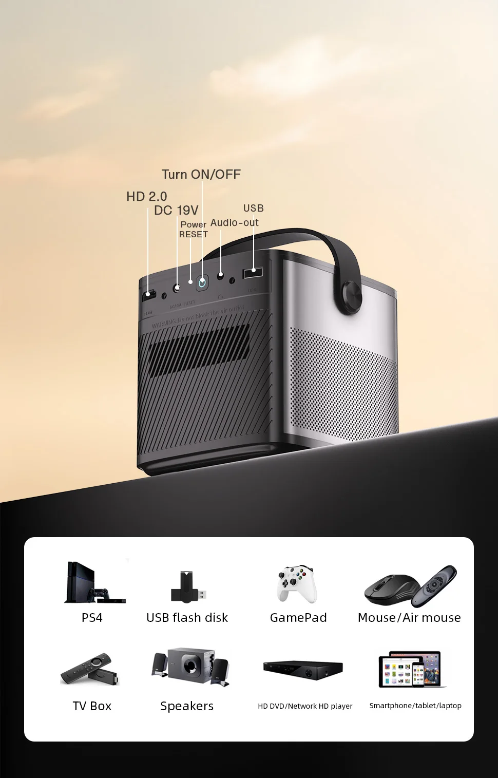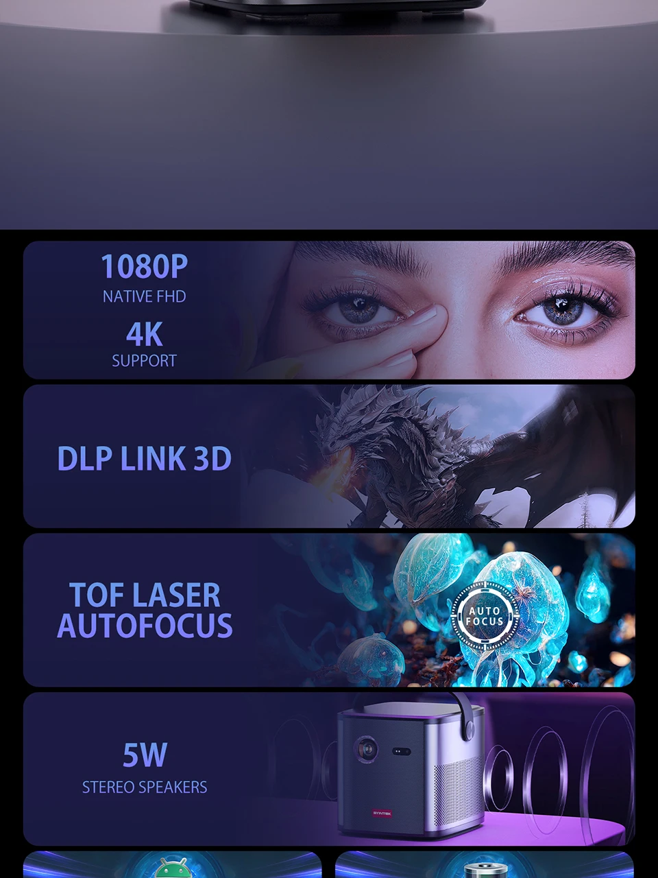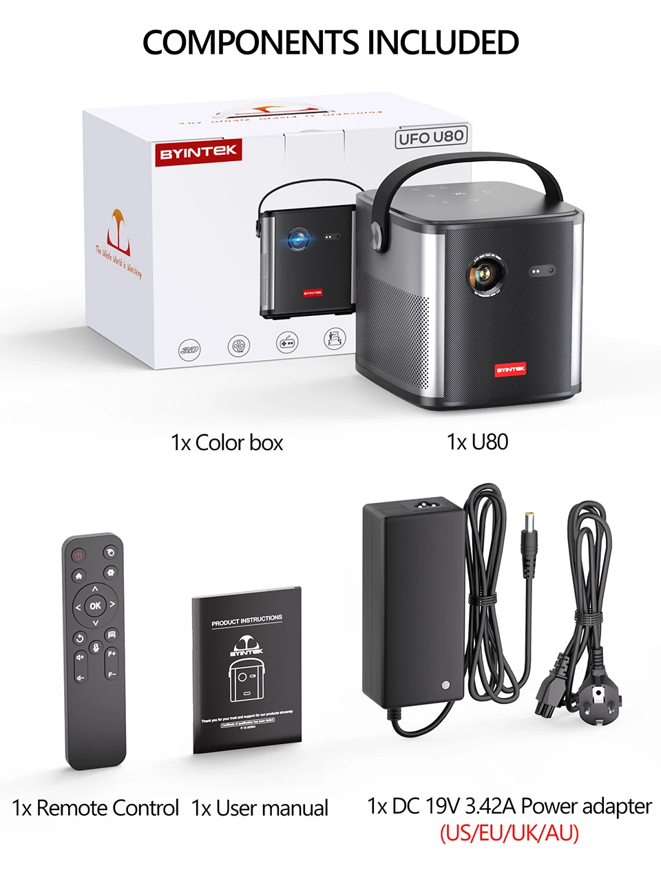 BYINTEK-Mini Projetor Portátil DLP Inteligente, Home Theater, Projetor de Vídeo com Bateria, 3D, Cinema 4K, Android 11.0, WiFi, 1080P, U80
