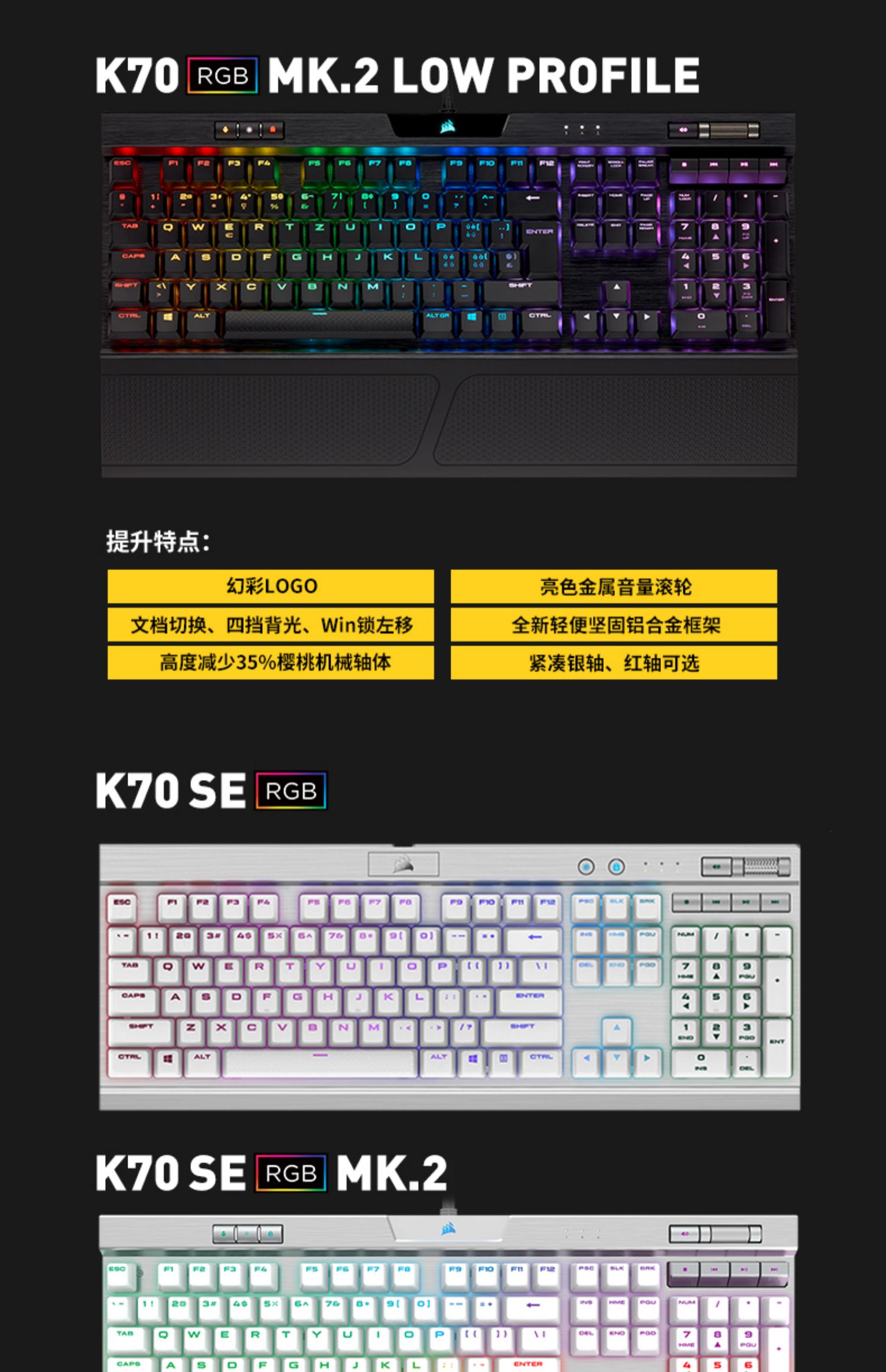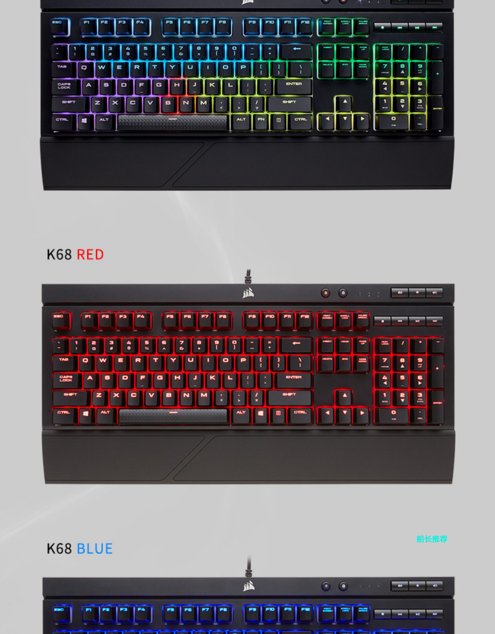 K68 红光红轴, K68 蓝光青轴, K70 CORE RGB 红轴, JOJO石之海K70 TKL红轴 87键便携款, K70 RGB TKL 银轴 87键便携款, K70 RGB TKL 光轴 87键便携款, K70 RGB PRO 红轴 三代PBT键帽, K70 RGB PRO 茶轴 三代PBT键帽, K70 RGB PRO 青轴 三代PBT键帽, K70 RGB PRO 银轴 三代PBT键帽, K70 RGB PRO 黑色光轴 三代PBT键帽, K70 RGB PRO 白色光轴 三代PBT键帽, K70 MINI 无线红轴黑色 三模/插拔轴, K70 MINI 无线红轴白色 三模/插拔轴, K70 MINI 无线银轴黑色 三模/插拔轴, K65 RGB PLUS 红轴 三模/插拔轴, K95 RGB XT- 银轴 110键 PBT键帽, K65 RGB mini 红轴 61键黑色, K65 RGB mini 银轴 61键黑色, K70 RGB MK.2 红轴, K60 PRO 红光V轴, K95 RGB XT- 茶轴 110键 PBT键帽, K70 RGB TKL 红轴 87键便携款